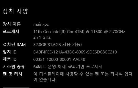 - μ΄μ체μ : μλμ°10 (x64)