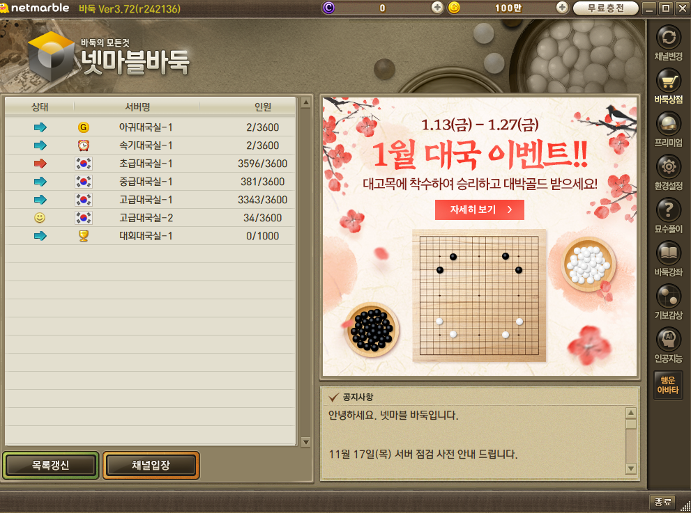 μ μ¬μ§μ μλ² μ νμ κ²μ νλ©΄μ μμ μ°Έκ³ μ¬μ§μ λλ€. κ²μμ μμνκ³ μλ²λ₯Ό μ νν ν, μ¨λΌμΈμμ μλμ μ¦κ²κ² λ°λμ μ¦κΈ°λ©΄ λ©λλ€.